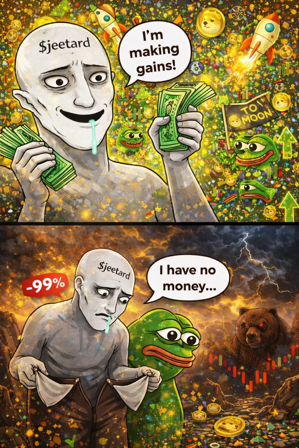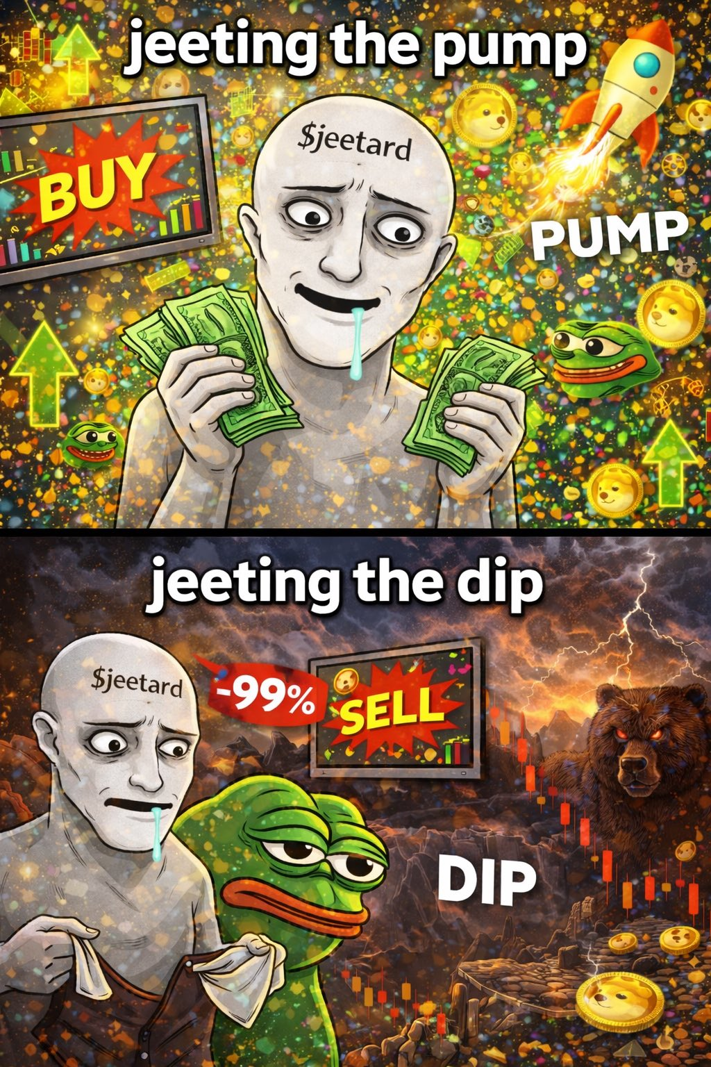 When you buy high and sell low. Crypto genius move. While Pepe cries, Jeetard stays happy. Copium is one hell of a drug.